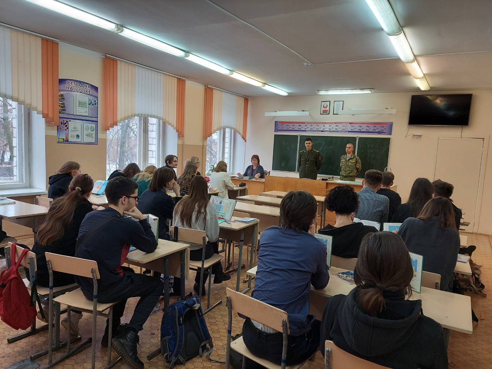 5 февраля в рамках профориентационной работы для учащихся 11-х классов ГУО "Средняя школа №49 г.Гомеля" организована встреча с курсантами военно-транспортного факультета УО "Белорусский государственный университет транспорта". Ребятам рассказали об условиях и преимуществах поступления на военные факультеты учреждений высшего образования Республики Беларусь.