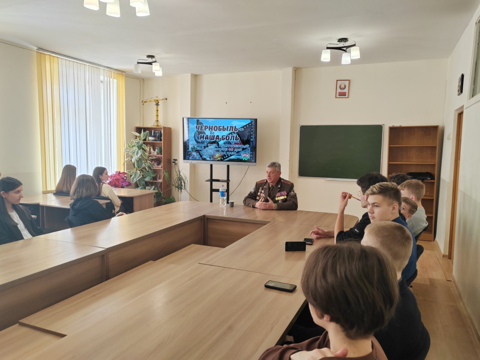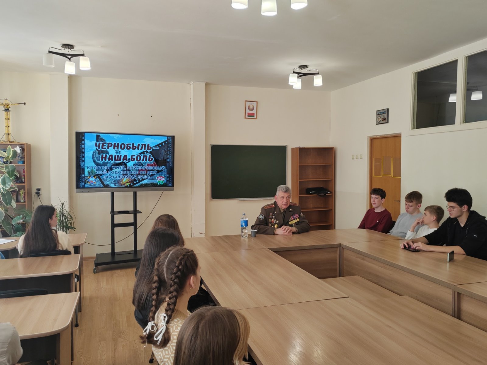 В День памяти погибших в радиационных авариях и катастрофах, в рамках мероприятий, посвященных годовщине аварии на Чернобыльской атомной электростанции, на базе ГУО «Средняя школа №49 г.Гомеля» для 9-10 классов состоялся круглый стол "Чернобыль... Боль... Память...", в ходе которого организована встреча с ликвидатором последствий чернобыльской катастрофы, подполковником запаса