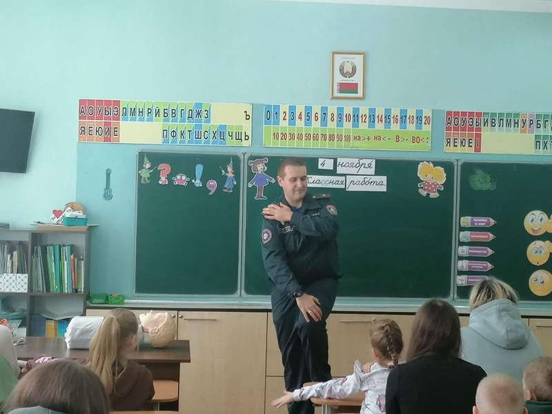 2 ноября учащиеся 1 «Б» класса ГУО "Средняя школа №49 г.Гомеля" вместе со своими родителями и классными руководителем Лубской С.Г. принялили участие в профилактическом мероприятии по безопасности жизнедеятельности и оказанию первой помощи «Сохрани жизнь ребенка», которое проводил старший инспектор ЦБЖиВО Гомельского областного управления МЧС Сташук П.А. Участники мероприятия услышали и наглядно увидели много полезного: как оказать первую помощь ребенку, который потерял сознание, при удушье. Повторили телефоны служб спасения. В конце мероприятия участникам разрешили потренироваться на манекене. Дети и родители высказали мнение о том, что такие мероприятия не просто имеют место быть, а должны проводиться как можно чаще.