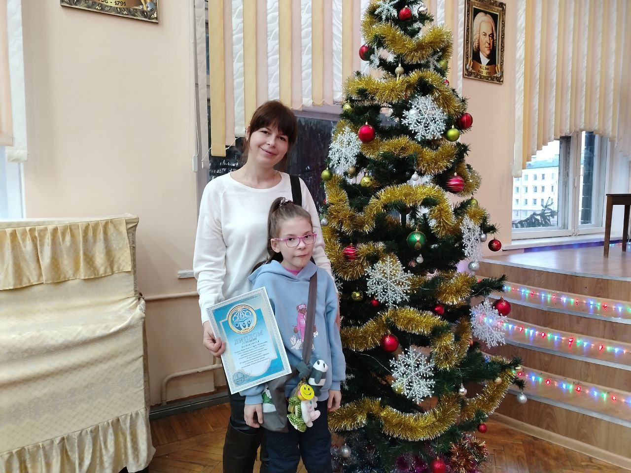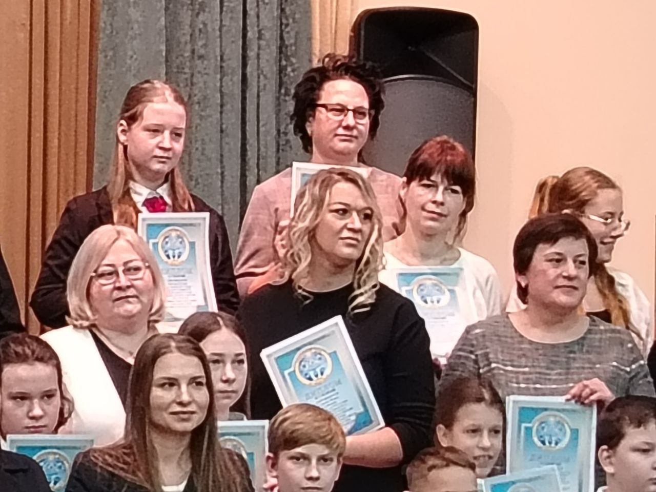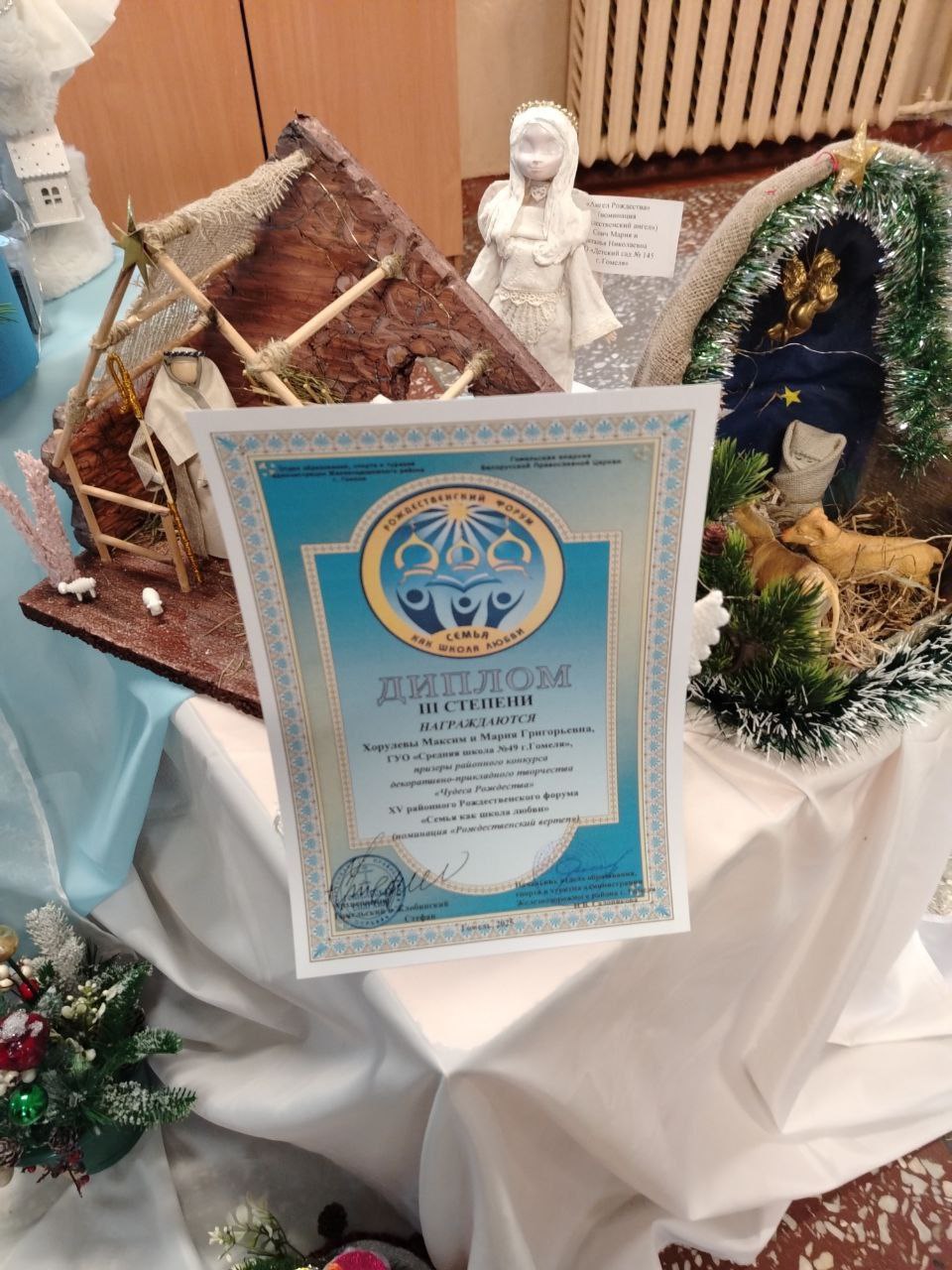 Учащиеся 3 "Б" класса Ходько Кристина, 5 "А" класса Навроцкая Ксения и 9 "А" класса Хорулев Максим вместе со своими мамами награждены дипломами победителей на закрытии районного Рождественского Форума.