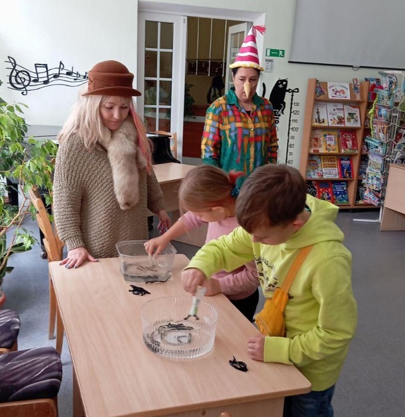 Книжная прогулка "Тайна золотого ключика" в библиотеке им. И. П. Мележа. Дети с удовольствием играли со сказочными героями, отгадывали загадки Кота Базилио, отвечали на вопросы Буратино, собирали на скорость из цветных фишек азбуку.